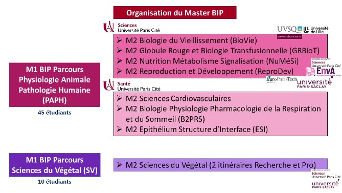 Le master BIP permet une spécialisation progressive rendue possible par la diversité des parcours de M2. Les nombreux partenariats avec d'autres universités parisiennes et de province permettent d'assurer une formation de pointe et de qualité.