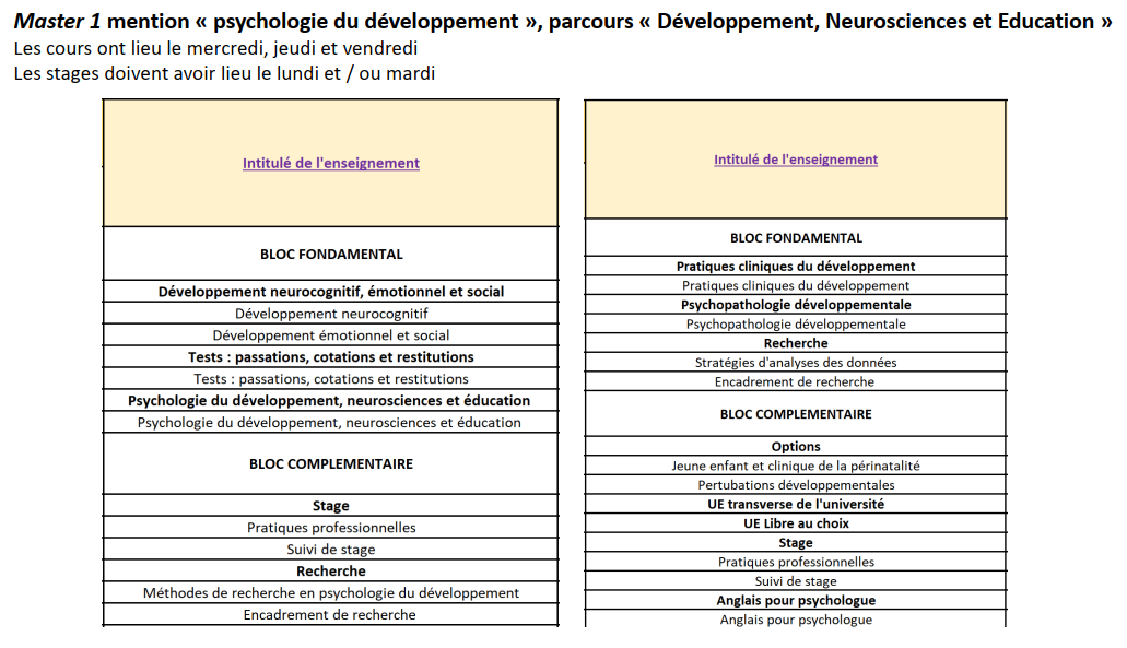 Master Psychologie du développement - Parcours : Neurosciences, développement et éducation