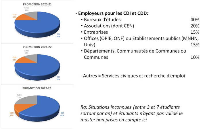 Sur la base des retours des diplômés, leur taux d’insertion dans les métiers de l’environnement quelques mois après l’obtention de leur master, est de l’ordre de 75 à 80 %.